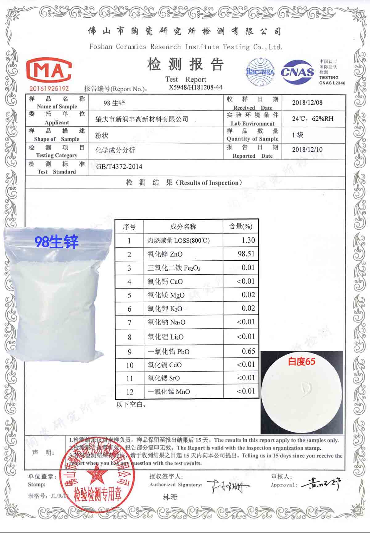 經(jīng)過高溫煅燒的氧化鋅,在釉料中的使用性能良好,不觸變,無針孔,能提高窯速拉高產(chǎn)磚量。